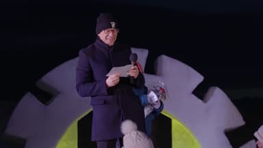 Ordfører Ørjan Jensen taler under åpningsshowet fredag.